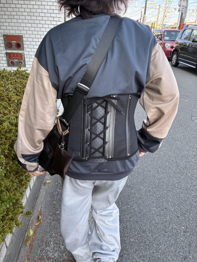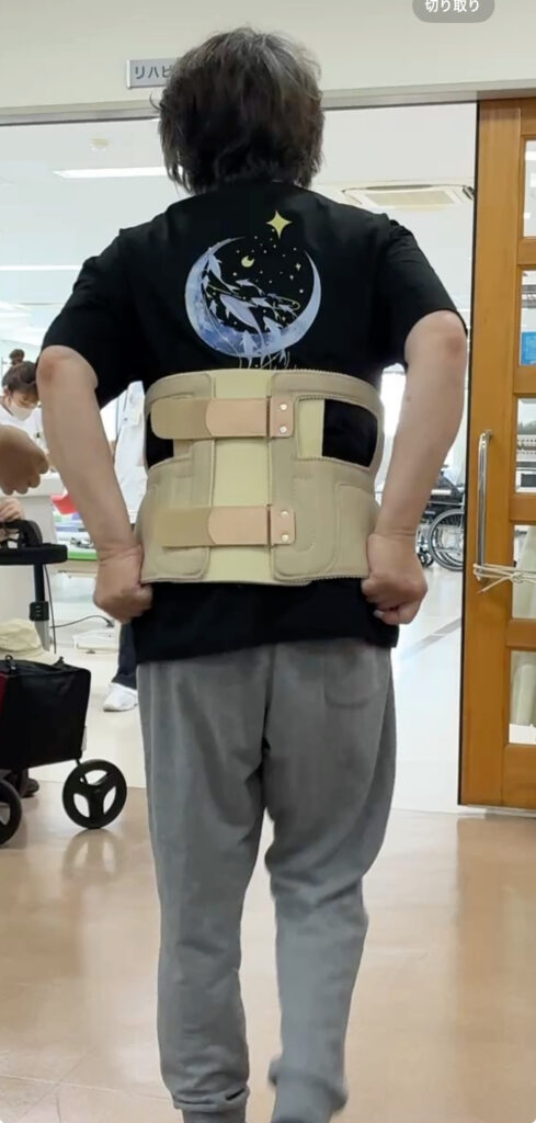 コルセットを着けた状態でベッドサイドに座る練習をしたとのこと。