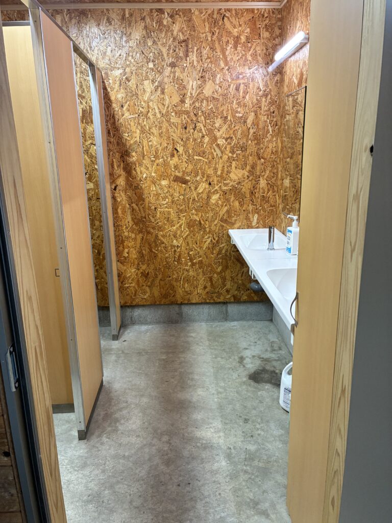 トイレはサイトの上、階段を登ったところにあります。結構急な階段です、夜間はしっかりセンサーライトが点きます。