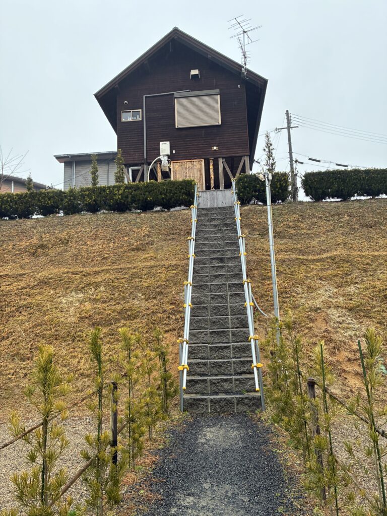 トイレや、洗い場はこの階段を登った上にあります。結構急な階段。