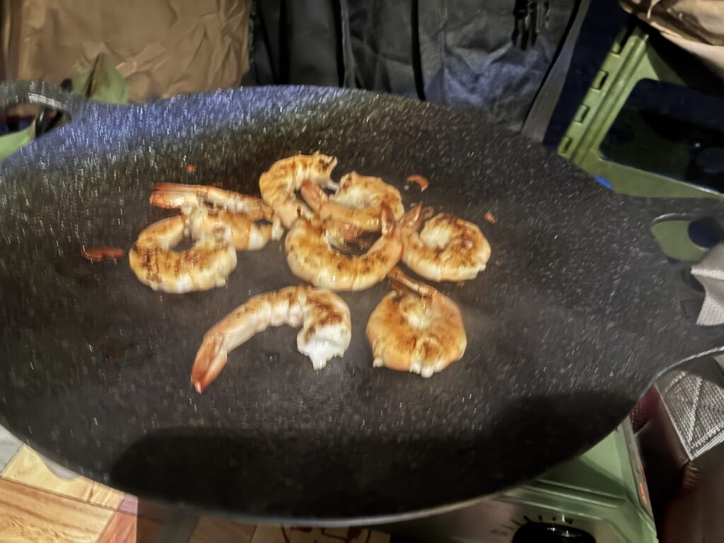 お肉やエビなど焼いたり、母が作ったおでんを食べたりと、なかなか充実の夕食になった。