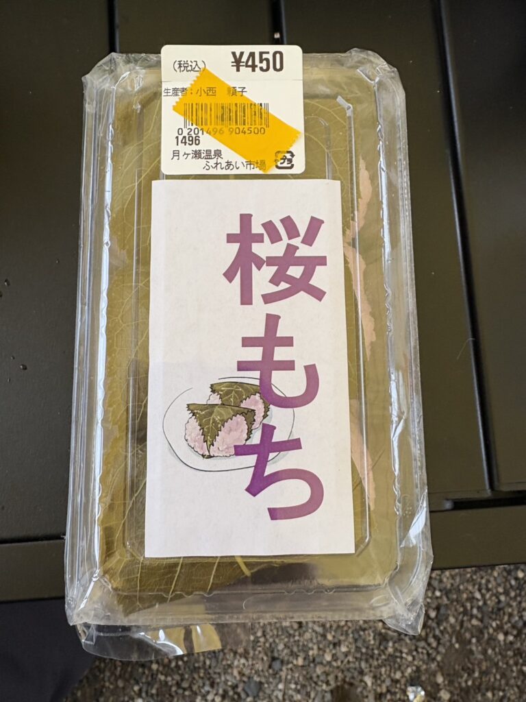 市場で買った桜餅、粒感があり美味しかった。